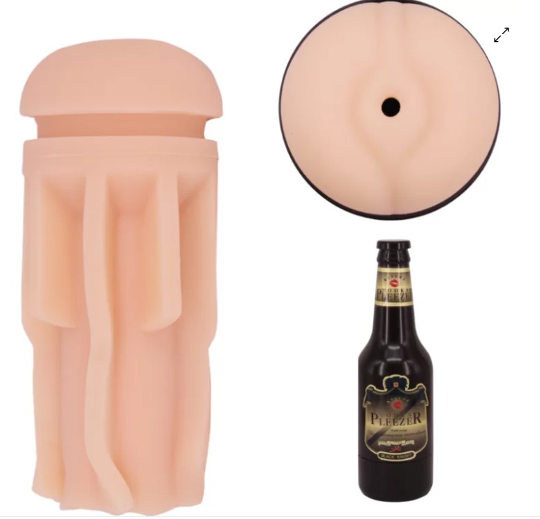 Masturbador inovador disfarçado de garrafa formato ânus e canal interno texturizado.