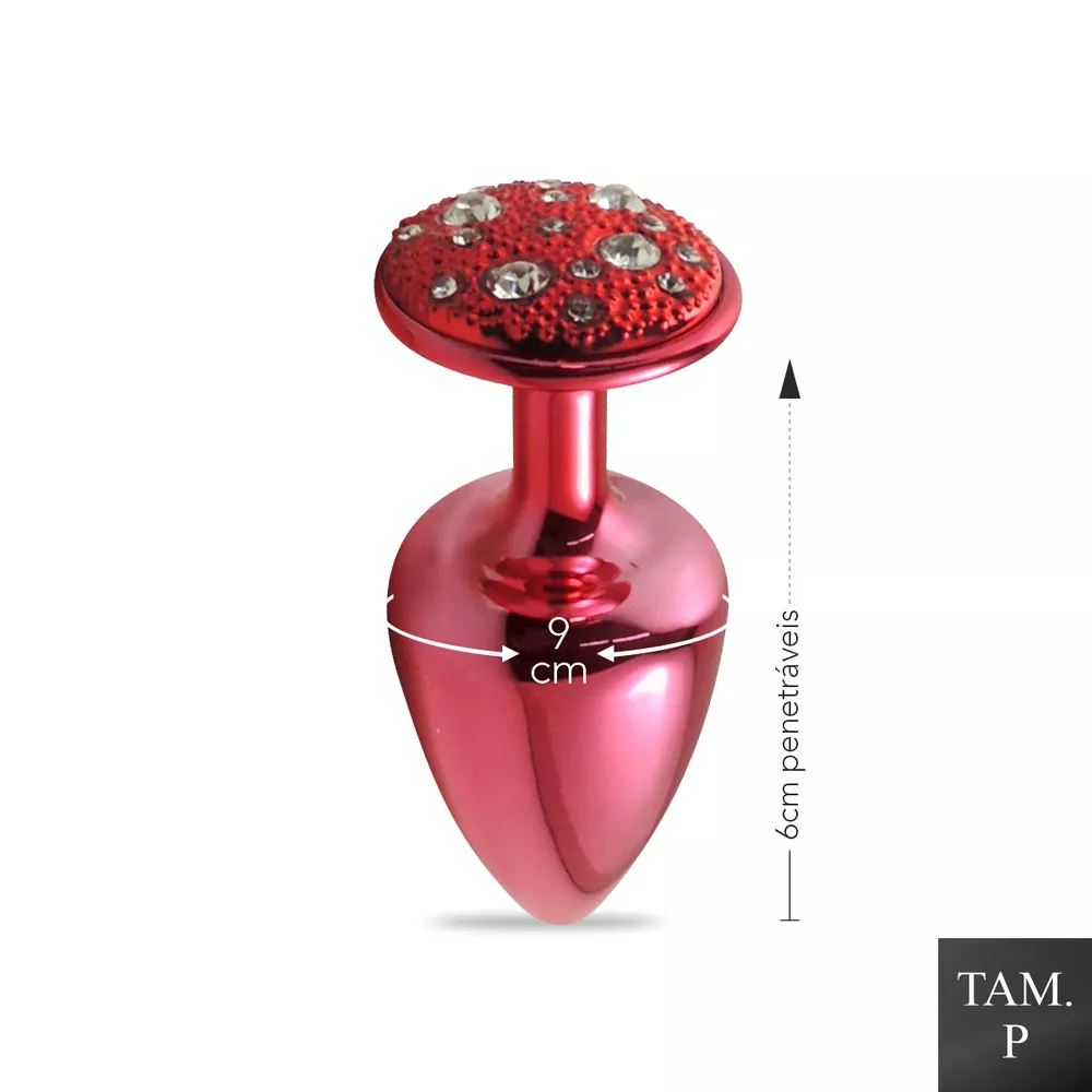 Plug Anal P vermelho com pedra cravejada em strass vermelho.