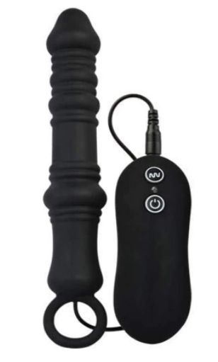 Plug anal feito de silicone, material macio com toque aveludado. Possui ponta bem saliente e vários relevos anelados que tornam a penetração ainda mais intensa e prazerosa. Em sua base há uma alça para tirar o plug de maneira prática e segura após a introdução. É à prova d'água, o que aumenta as possibilidades de uso e facilita a higienização. Possui vibrador com 10 padrões de vibração e controle remoto com fio.