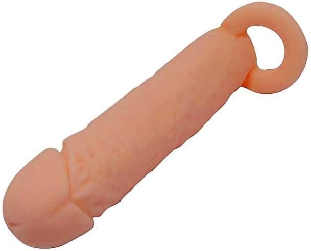 Capa peniana extensora produzida em cyberskin, um material macio, flexível e de alta qualidade que imita com perfeição a pele humana.