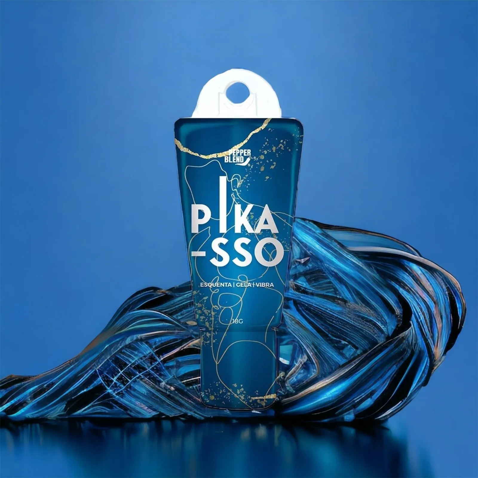 Gel Lubrificante Comestível Pikasso Esquenta, Gela e Vibra 18g-Extrato de Jambu Aromas de Menta ,Catuaba e Arginina,