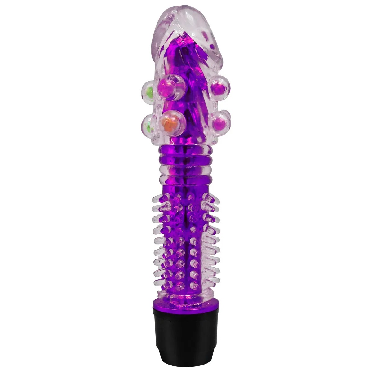 Vibrador translúcido com texturas para melhor estimulação, feito em Jelly e vibração multivelocidade.